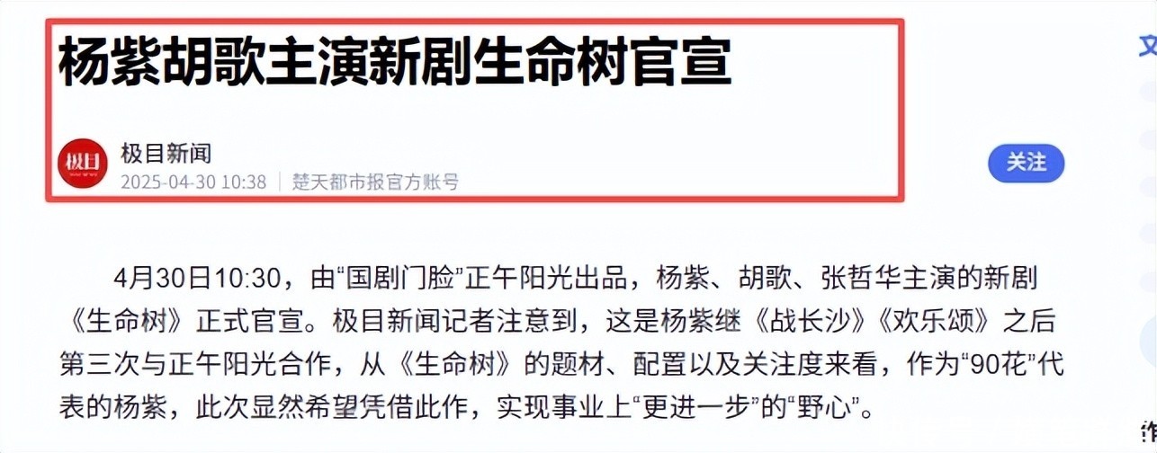 万众瞩目之下,杨紫主演的生态题材剧《生命树》正式官宣定档。